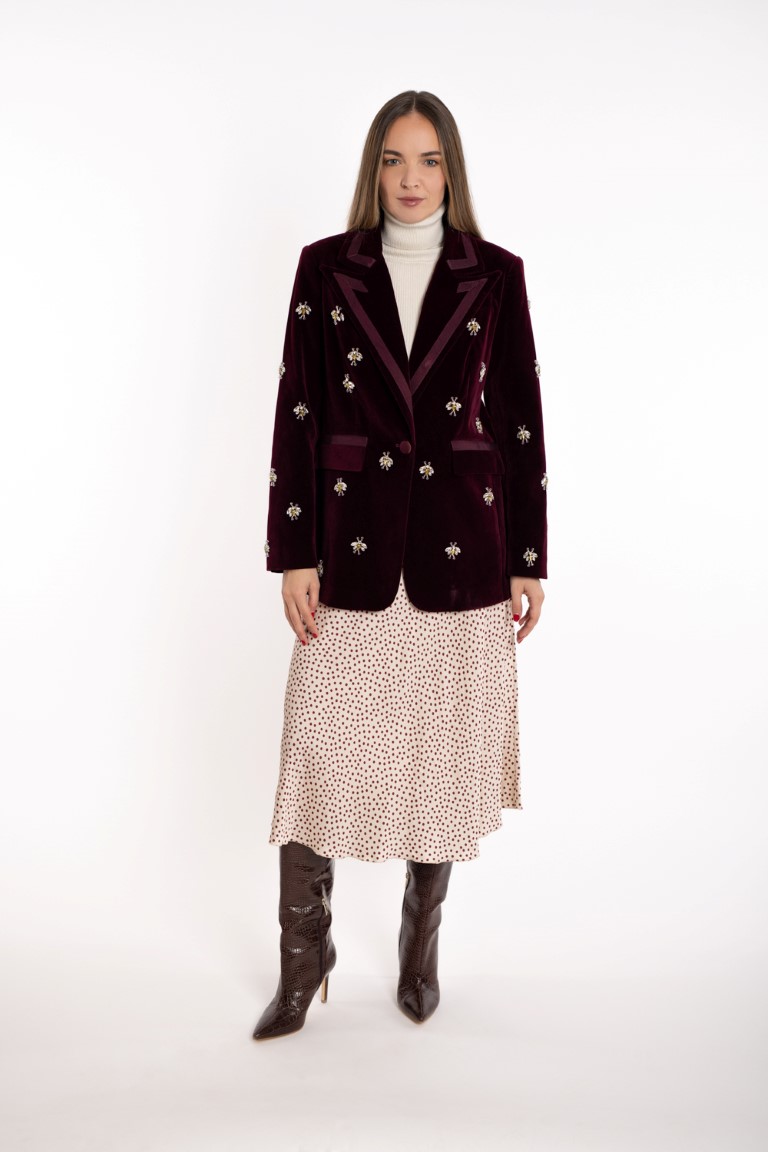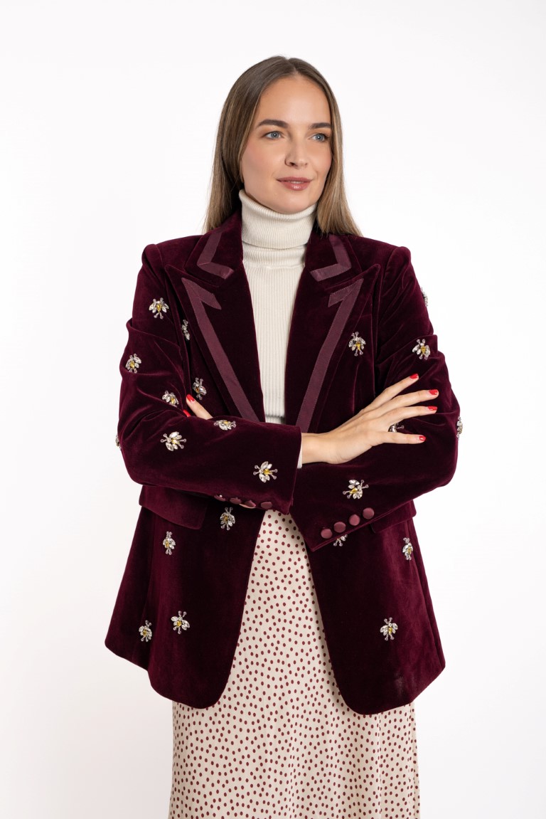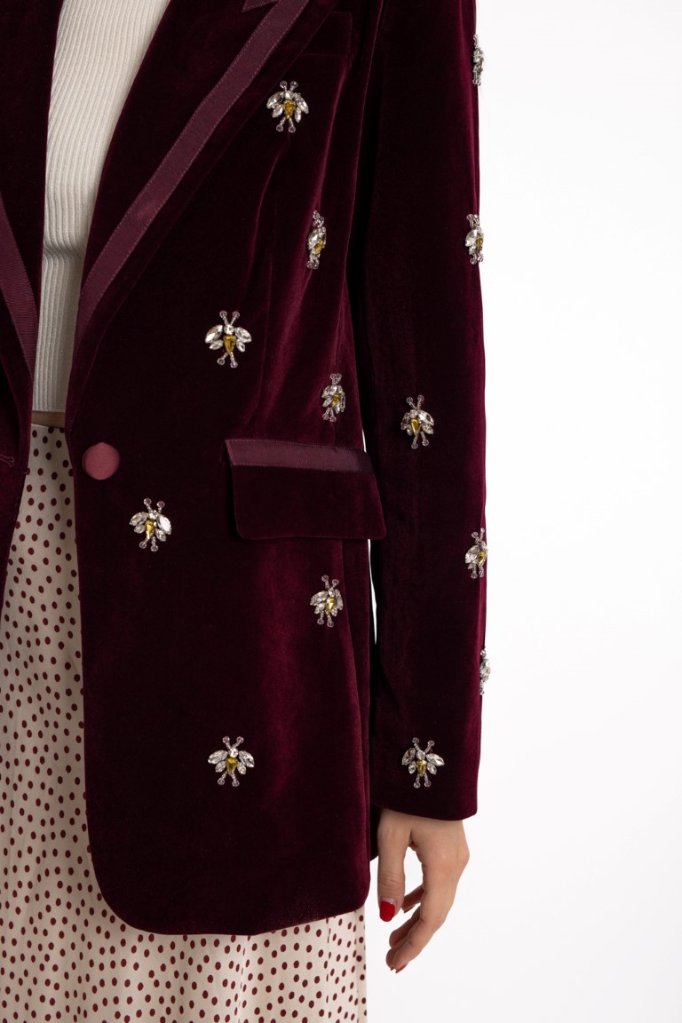 Bordo baršunasti sako sa sjajnim aplikacijama.