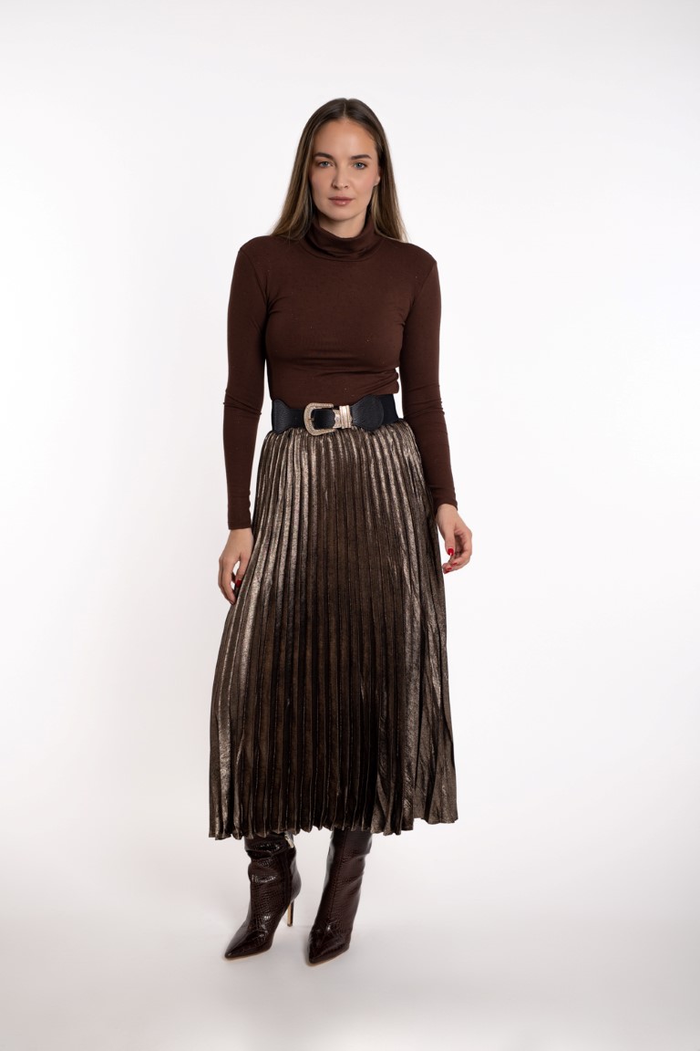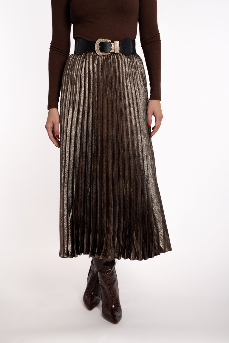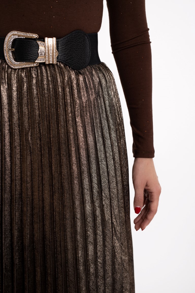 Plisirana metalizirana suknja- smeđa