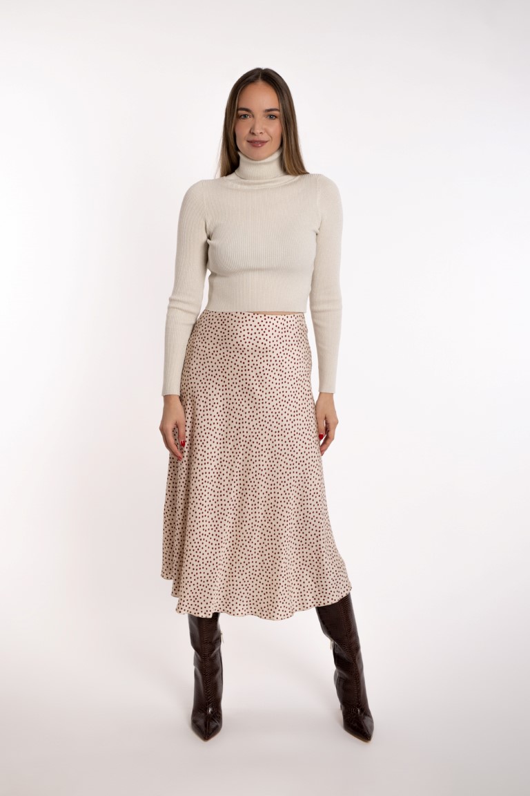 Satenska bež suknja sa bordo točkicama